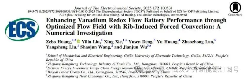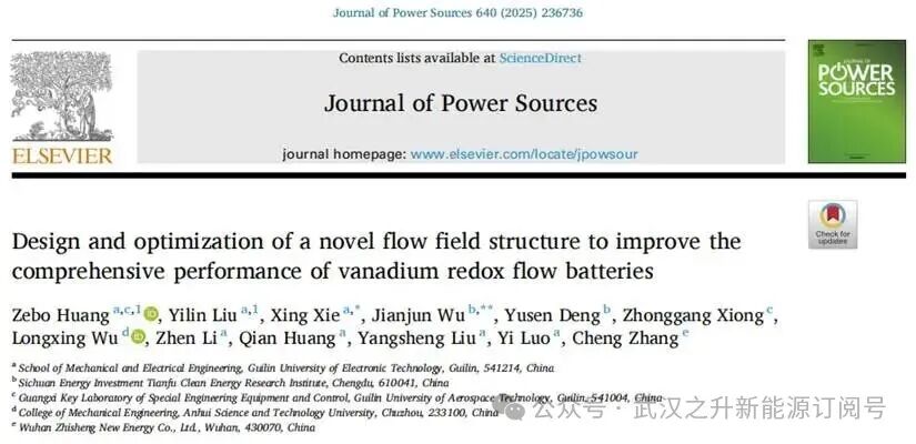 1、祝贺我司客户桂林电子科技大学黄泽波博士团队发表JPS:新型流道结构的设计与优化:提升钒液流电池的综合性能(点击论文题目查看全文赏析)