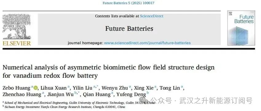 [2] Huang Z, Xuan L, Liu Y, et al. Numerical analysis of asymmetric biomimetic flow field structure design for vanadium redox flow battery[J]. Future Batteries, 2025, 5: 100017. https://doi.org/10.1016/j.fub.2024.100017
