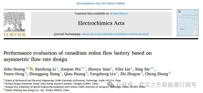3、祝贺我司客户桂林电子科技大学黄泽波博士团队发表EA: 基于非对称流量设计的钒液流电池性能评估(点击论文题目查看全文赏析)