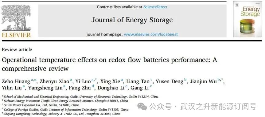 [4] Huang Z, Xiao Z, Luo Y, et al. Operational temperature effects on redox flow batteries performance: A comprehensive review[J]. Journal of Energy Storage, 2025, 131: 117631. https://doi.org/10.1016/j.est.2025.117631